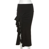 Schwarzer halblanger Rock mit Volants und hoher Taille