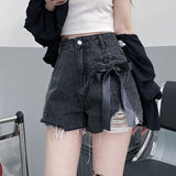 E-Girl-Shorts aus schwarzem Denim mit hohem Bund für den Sommer