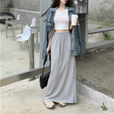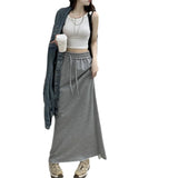Entdecken Sie den lässigen Charme unseres Casual Long Skirt, ein unverzichtbares Kleidungsstück für alle, die den Preppy-Style mit einem alternativen Touch lieben. Dieser Rock wurde für Frauen entworfen, die Wert auf Komfort legen, ohne dabei auf Eleganz zu verzichten. Er ist ein Must-have in der Garderobe von Studentinnen und Frauen, die einen schlichten und gleichzeitig modischen Look pflegen. Dieser lange Rock ist aus einem weichen, grau melierten Stoff gefertigt und bietet den ganzen Tag über Komfort. Der verstellbare, elastische Bund passt sich perfekt an Ihre Figur an und macht dieses Kleidungsstück zu einer vielseitigen Wahl für all Ihre Aktivitäten, sei es für einen Tag auf dem Campus oder einen entspannten Ausflug in die Stadt. Das schlichte Design des Rocks wird durch den geraden Schnitt, der bis zu den Knöcheln reicht, aufgewertet und schafft so einen schlanken, raffinierten Look. Kombinieren Sie ihn mit einem Crop-Top für einen auffälligen Kontrast oder tragen Sie ihn an kühleren Tagen mit einem Oversize-Pullover. Fügen Sie Sneakers für einen sportlich-schicken Look hinzu oder Ankle Boots, um den alternativen Look zu betonen.